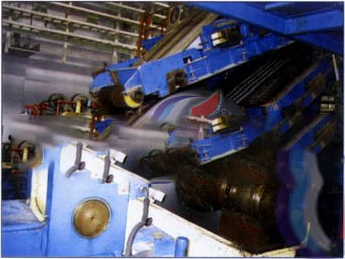 | 磁力開卷器工作原理 磁力開卷器由皮帶、皮帶輪、 永久磁鐵(電磁鐵)等部分組成,永久磁鐵(電磁鐵)安裝于皮帶輪及無頭皮帶包圍的空間內(nèi),當(dāng)鋼卷帶開卷時(shí),帶頭在磁鐵的磁力作用下,隨輸送帶順暢通過,確保開卷機(jī)鋼卷頭部順利穿帶。 |